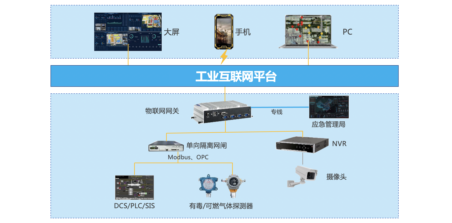 按照国家管理政策要求,具有危险品化工工艺、危险化学品及重大危险源的企业必须进行安全生产的重点监管,基于基础共性工业互联网平台,构建安全生产工业APP(两重点一重大),可支持多种风险源的接入、构建风险应急扩散模型与联动模型,更好的服务企业安全监管要求。面向重大危险源进行数据实时接入,形成监测服务、报警服务,同时与视频进行联动,进行重大危险源的趋势分析。
