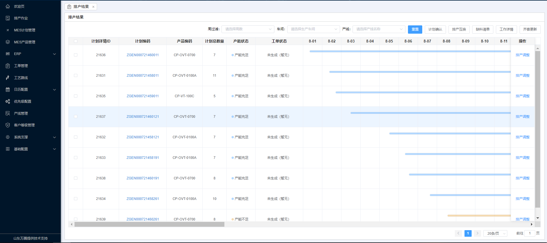 排程覆盖所有生产工序,支持对订单BOM或工作任务直接排程